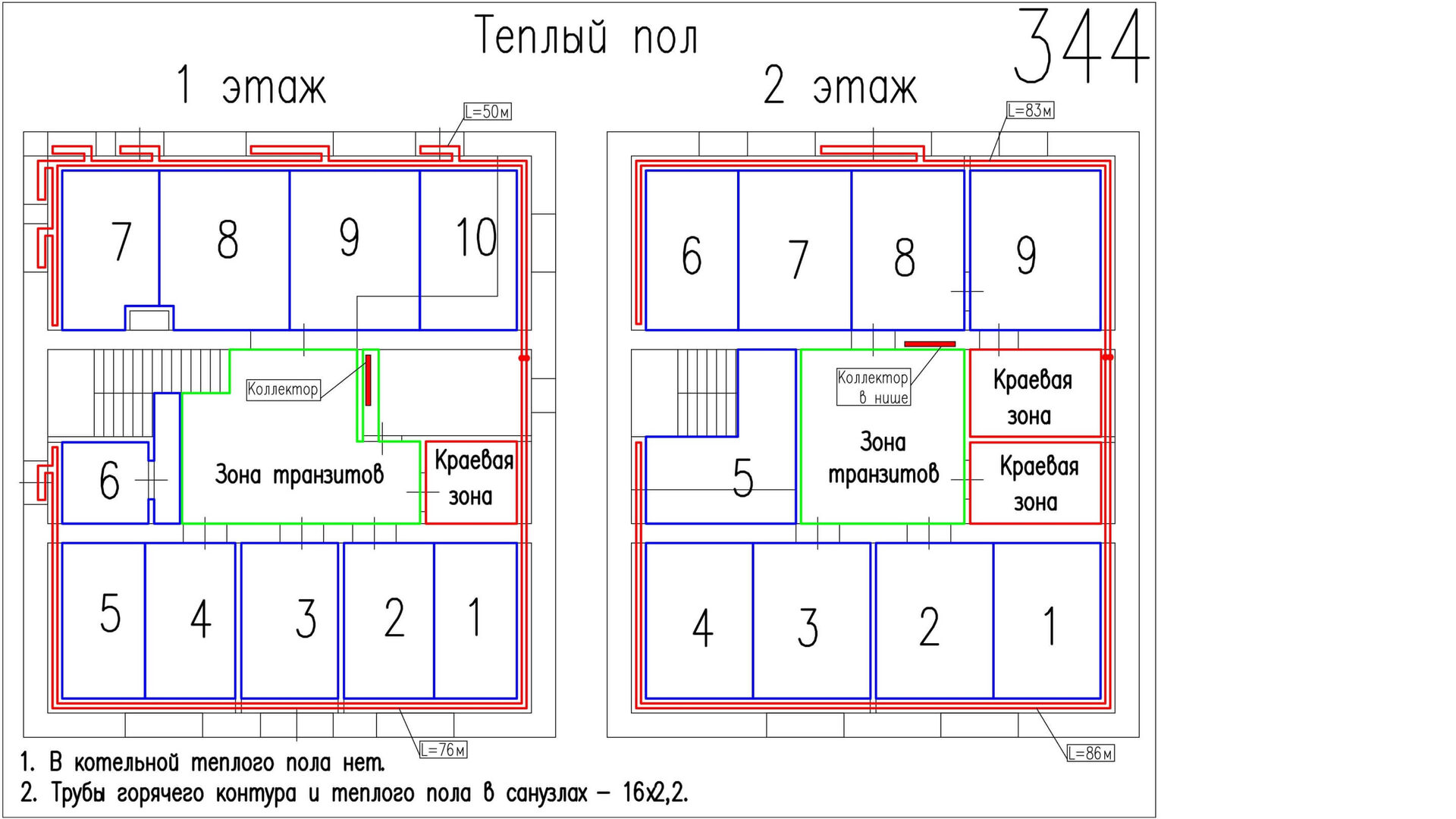 1. Теплый пол выполнен по всей площади как первого, так и второго этажа.
